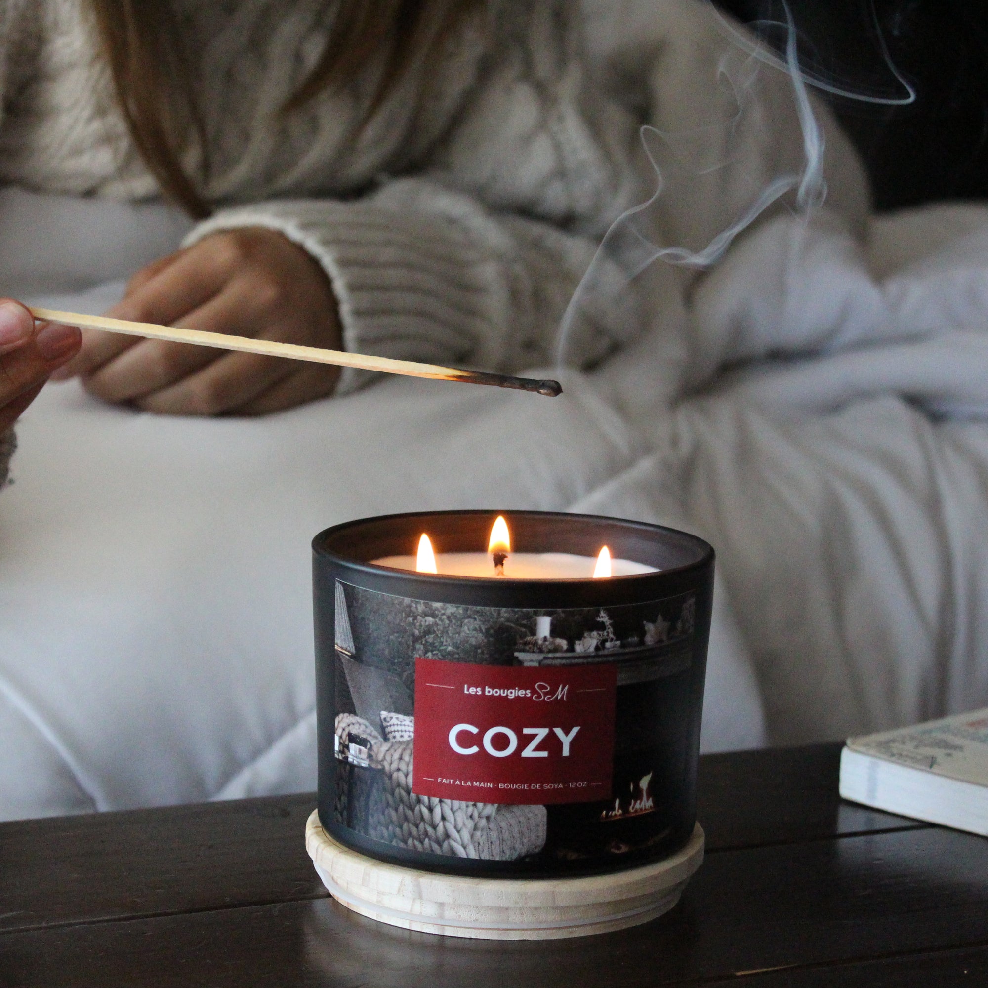 Chaque chandelle est coulée à la main au Québec, dans la pureté de la cire de soja et parfumée avec des fragrances naturelles, pour vous offrir une ambiance chaleureuse, authentique et sans compromis.